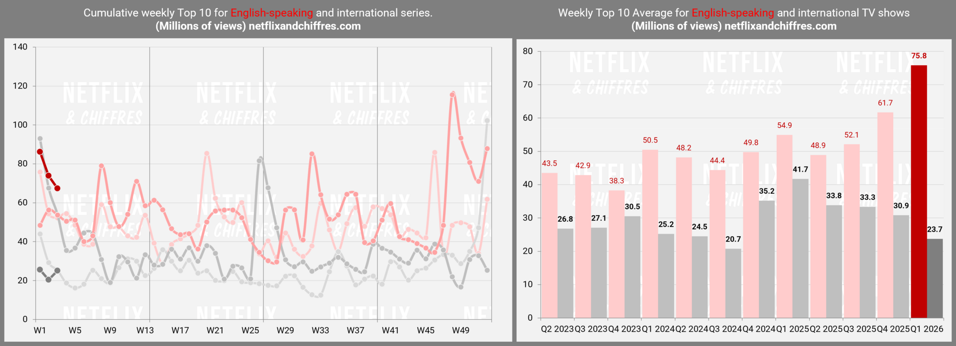 ➕ Cumul des “views” des Tops 10 séries (anglophone et international)