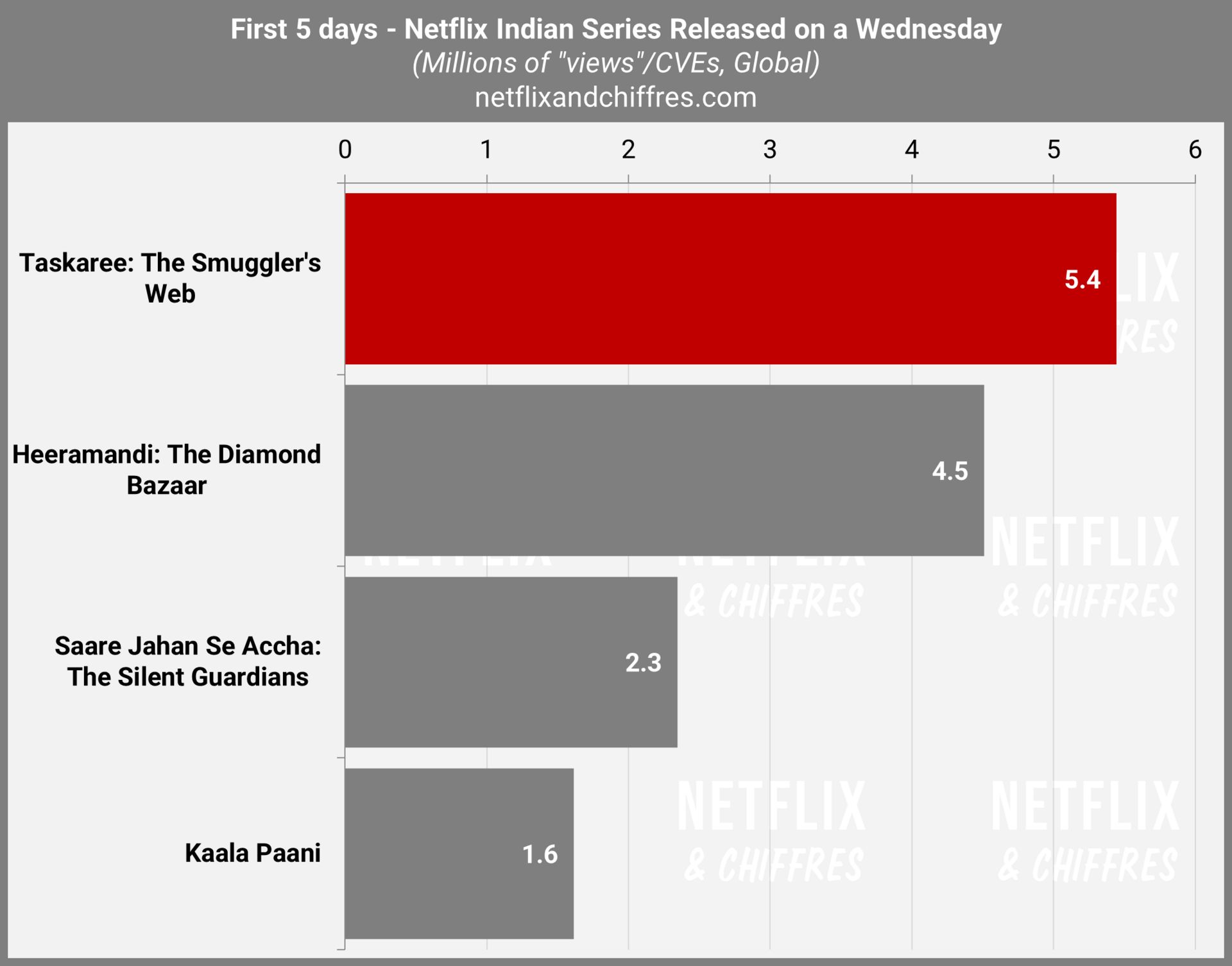 Surprise cette semaine : Taskaree: The Smuggler’s Web, une série indienne, est en tête du Top 10 non-anglophone avec un score très honorable, 5.4M sur ses 5 premiers jours, soit le meilleur lancement d’une nouvelle série indienne sortie un mercredi depuis juin 2021.