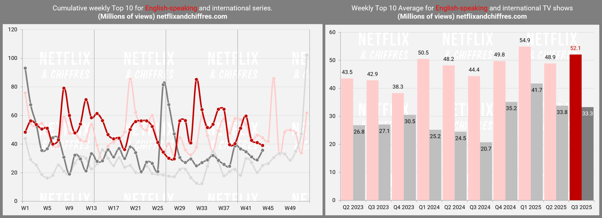 ➕ Cumul des “views” des Tops 10 séries (anglophone et international)