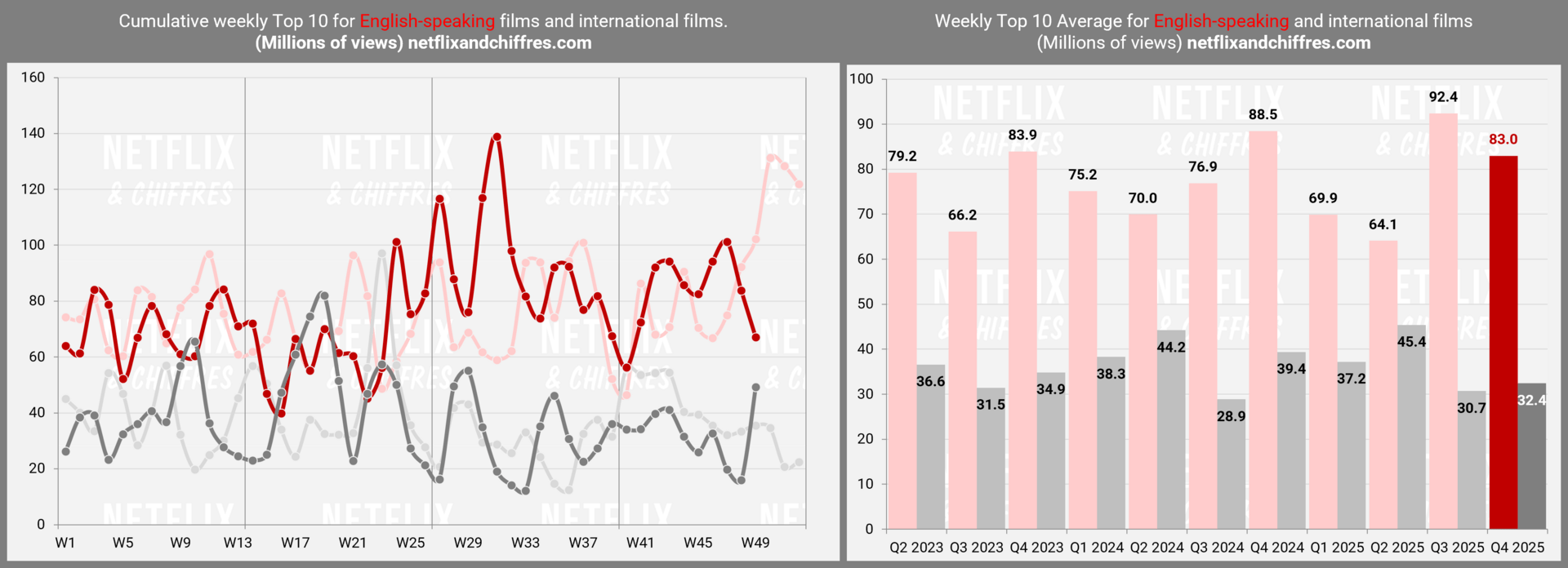 ➕ Cumul des views des Tops 10 films (anglophone et internationaux).