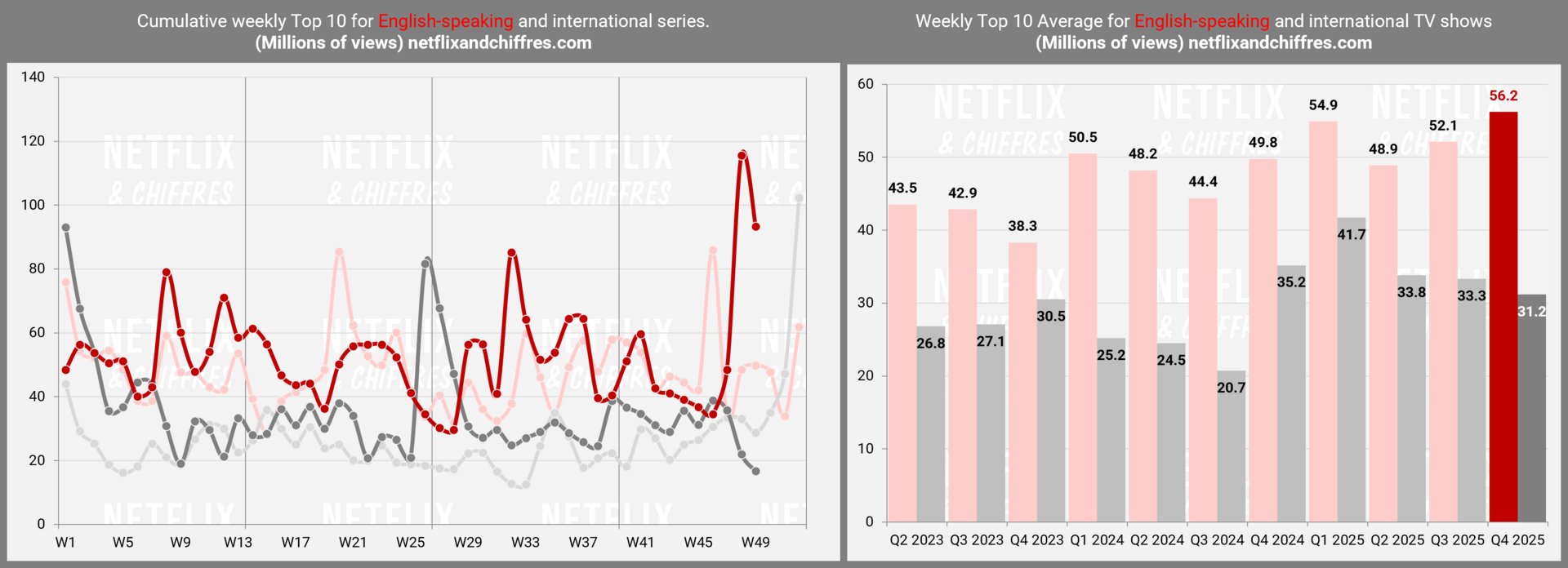 Bravo au Top 10 international qui signe sa pire semaine de l’année 2025 tandis que le Top 10 anglophone réalise la deuxième meilleure de la semaine, en partie grâce à Stranger Things mais aussi grâce surtout à la série docu Sean Combs.