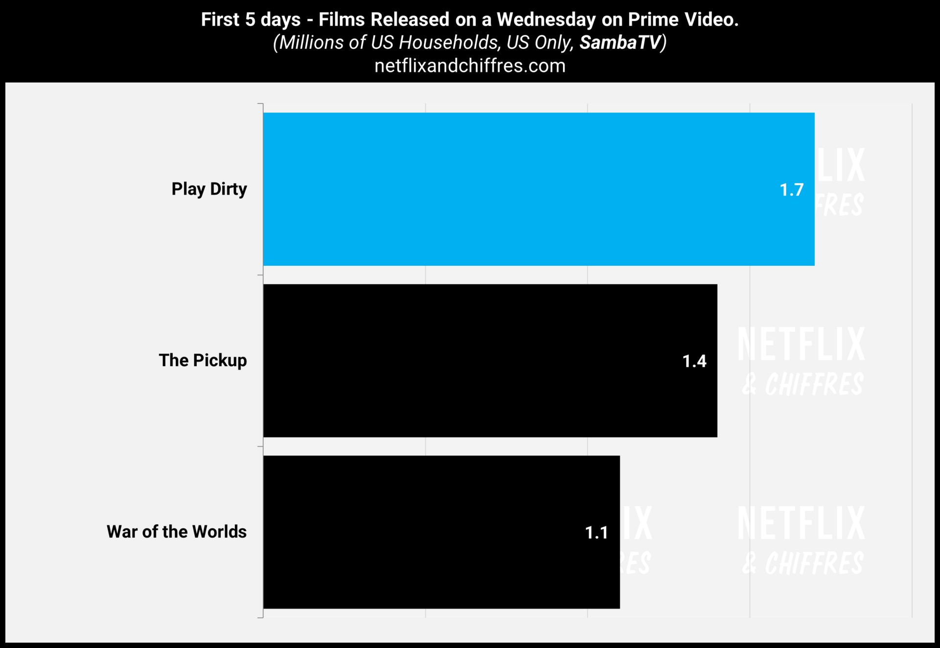 Chez SambaTV, on voit Play Dirty bien plus haut que The Pickup avec 1,7M de foyers US devant le film sur ses 5 premiers jours. On verra ce qu’en dit Nielsen dans quelques semaines !