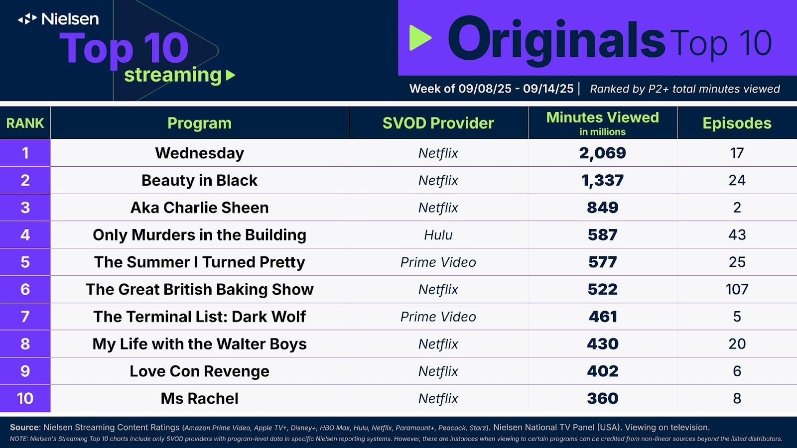 Les chiffres de cet article viennent du Top 10 Nielsen et du Top 10 Luminate.
